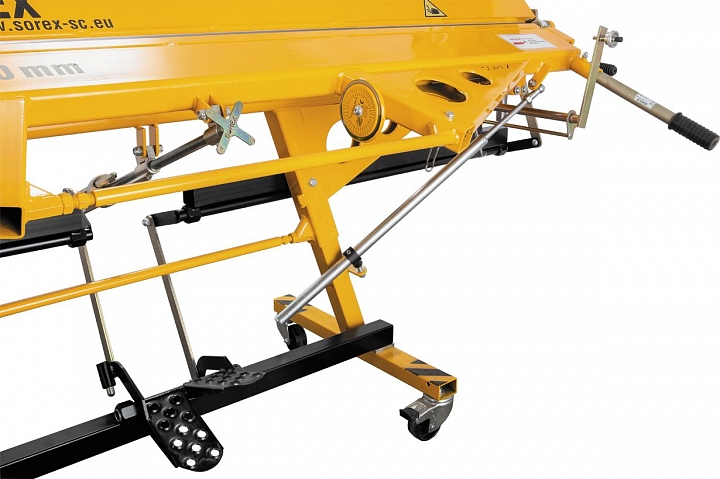 Задают фиксированный размер подачи листа из листогиба с фронтальной части станка для последующей резки роликовым ножом.